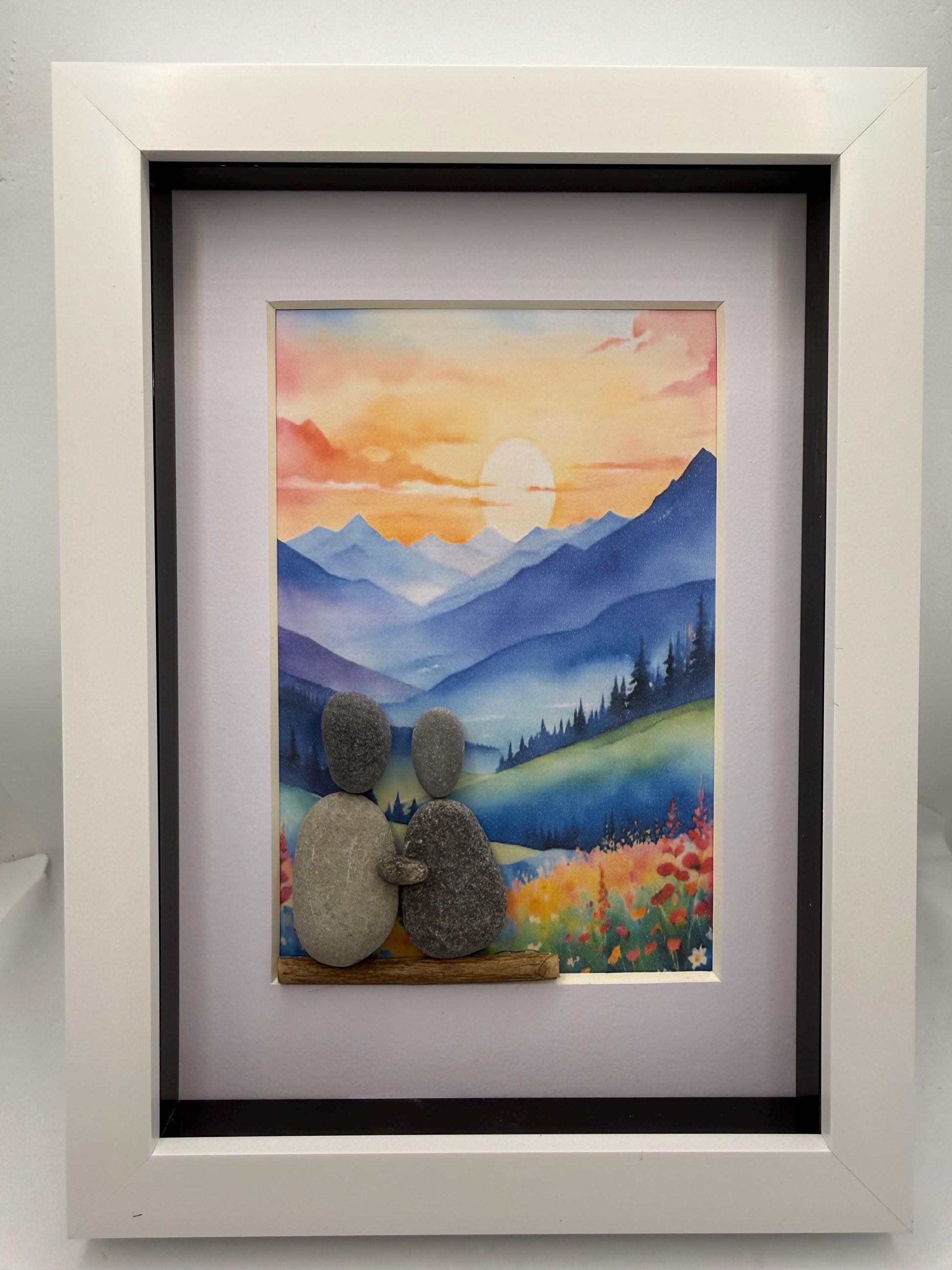 Landscape pebble art, pebble art scene, pebble art couple, pebble art, couple framed gift. Landscape gifts