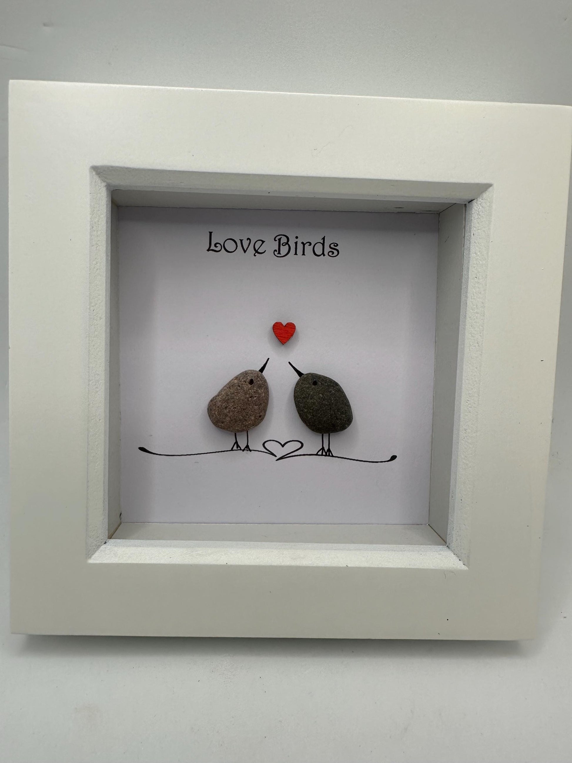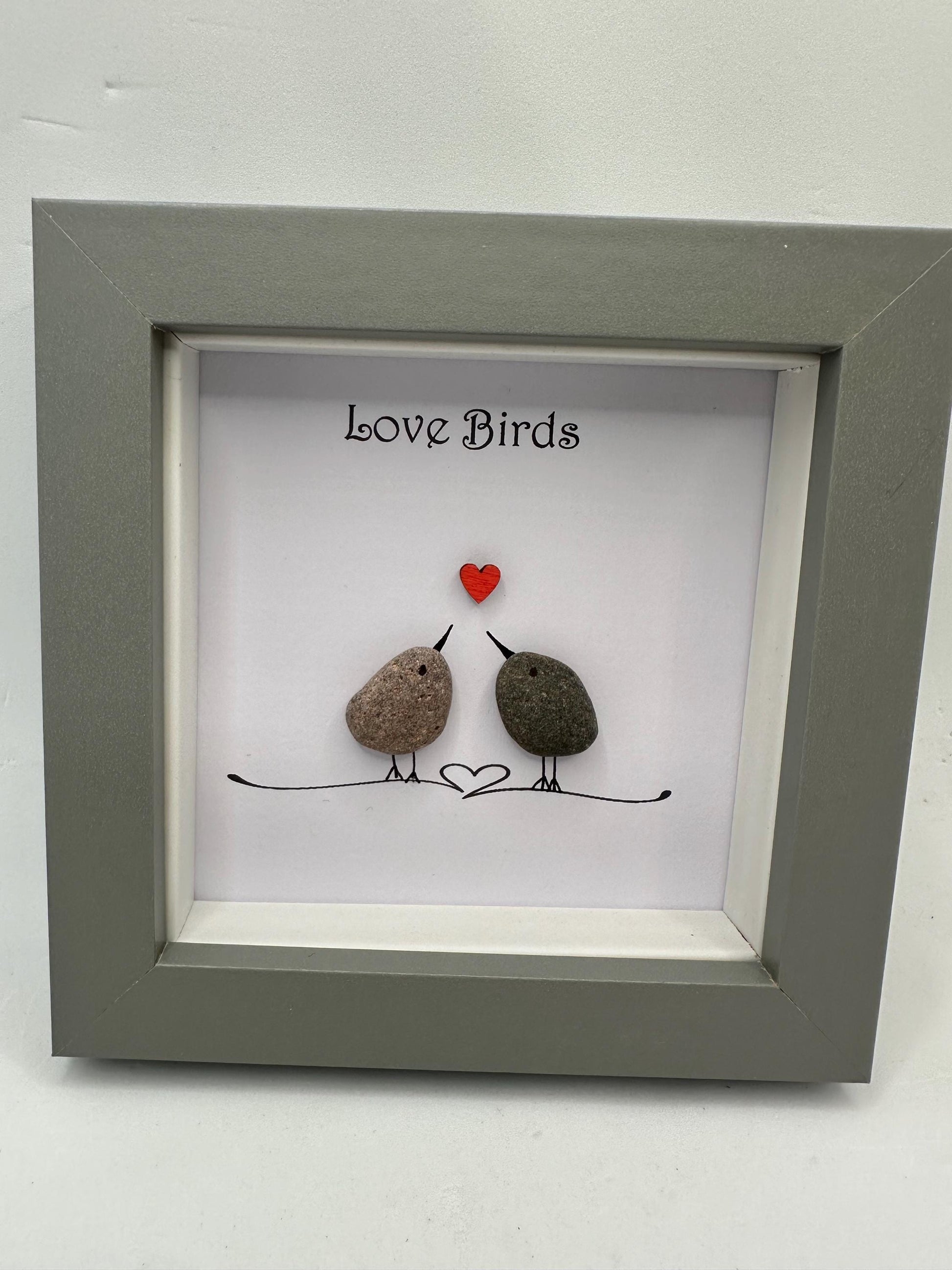 Pebble Art Anniversary Gift, Love Birds Couple, Personalised Framed Art