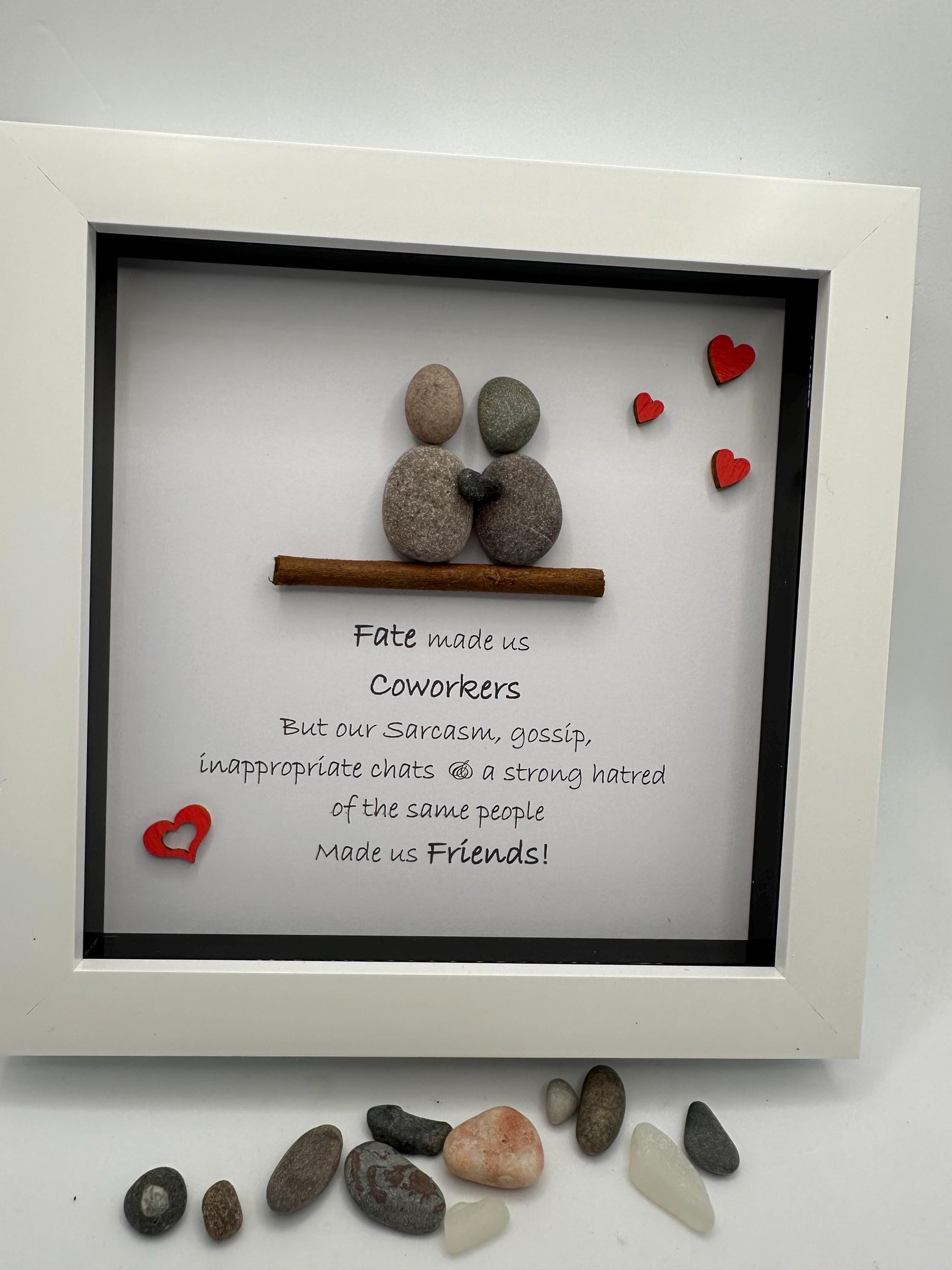 work made us coworkers , pebble picture, pebble art, friend pebble, friend gift, Scottish art, stone art, fate made us coworkers great gift for any co worker/friend with quote “Fate made us Coworkers But our Sarcasm, gossip, inappropriate chats a strong hatred of the same people Made us Friends!”