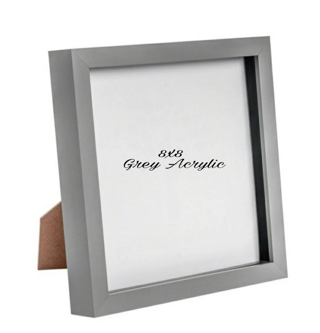 acrylic frame 8x8" - picture size is approx 8"x8" actual frame is 9"x9".