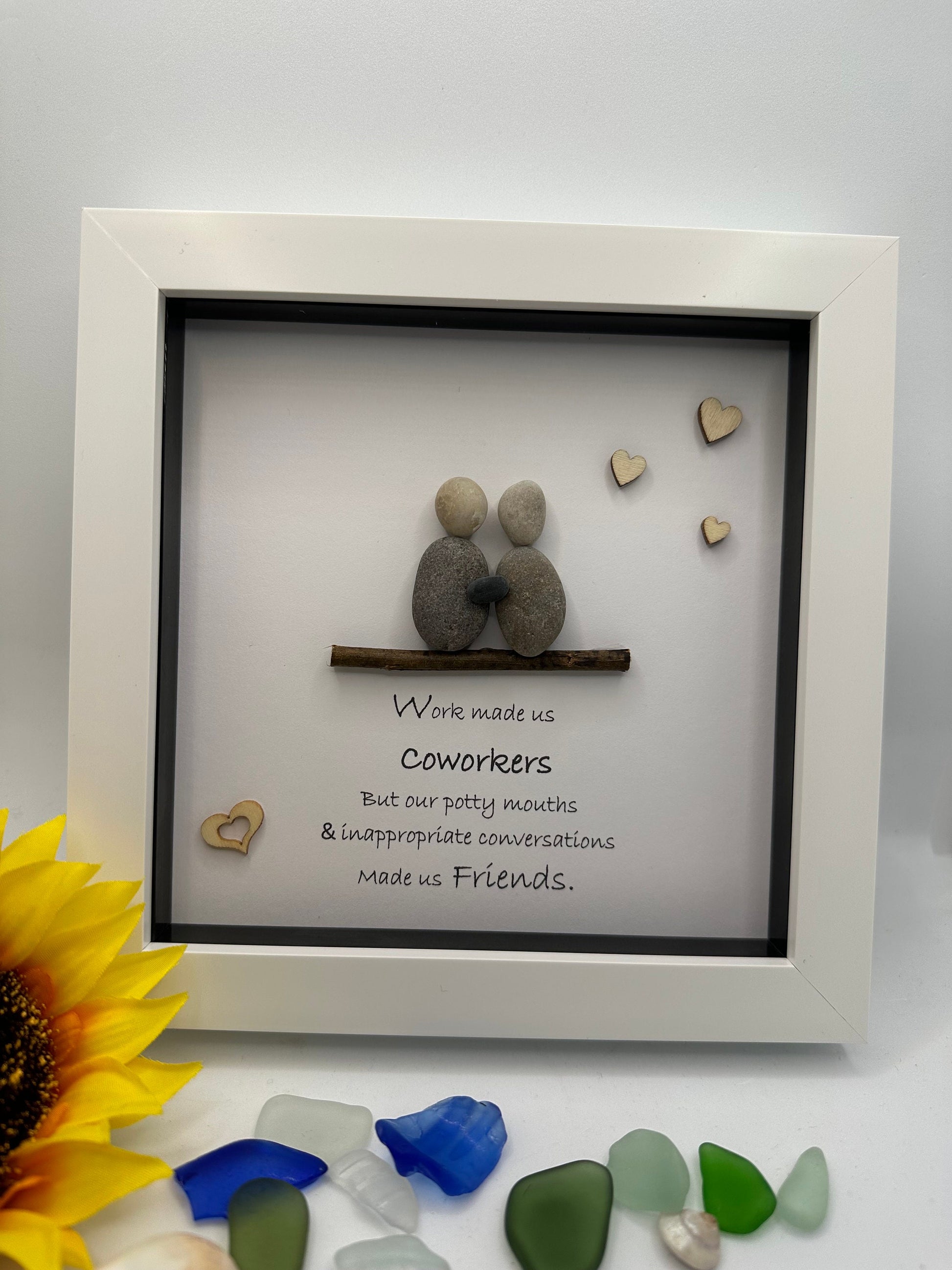 all orders are sent 1st class royal mailwork made us coworkers , pebble picture, pebble art, friend pebble, friend gift, Scottish art, stone art,