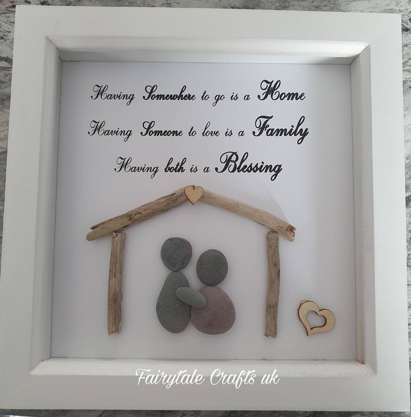 **please note due to christmas holidays i do not return to work until the 4th of Jan so orders will not be made or dispatched until then **Pebble art, new home, new house, moving gift, scottish art, pebble picture, stone art, family art,